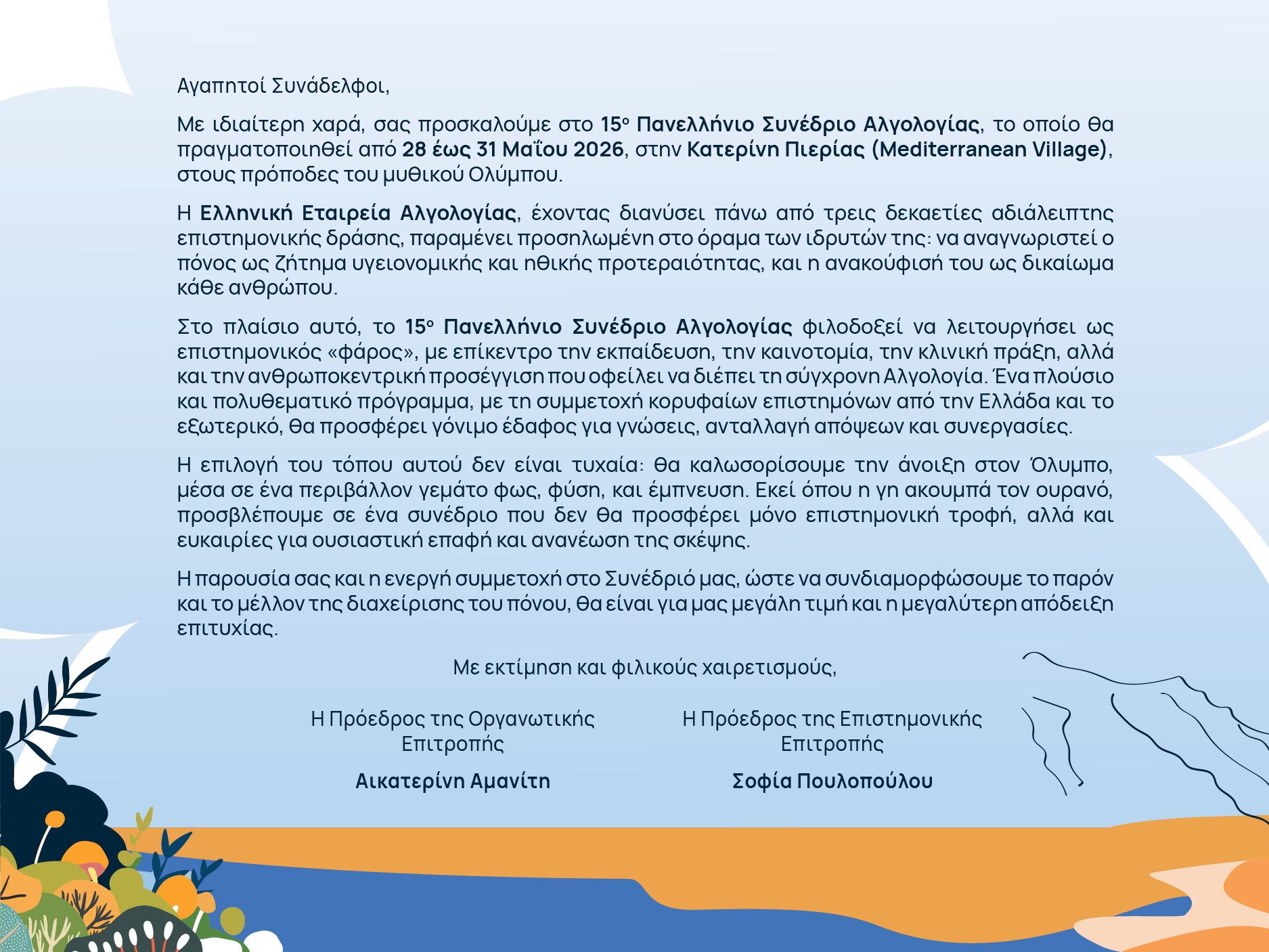 - Οργάνωση: Ελληνική Εταιρεία Αλγολογίας