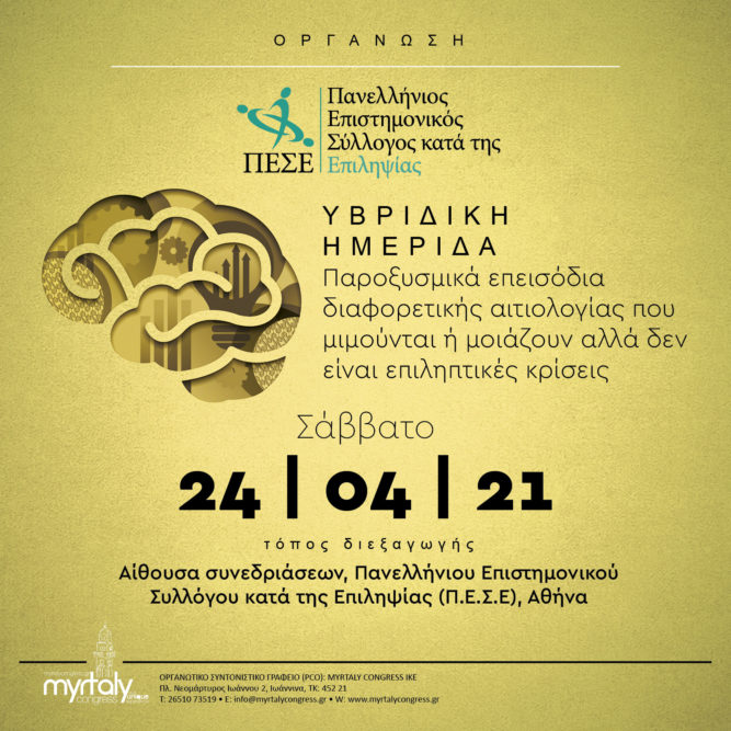 “Παροξυσμικά επεισόδια διαφορετικής αιτιολογίας που μιμούνται ή μοιάζουν αλλά δεν είναι επιληπτικές κρίσεις” είναι το θέμα του Εκπαιδευτικού Σεμιναρίου που διοργανώνει ο Πανελλήνιος Επιστημονικός Σύλλογος κατά της Επιληψίας (Π.Ε.Σ.Ε.).