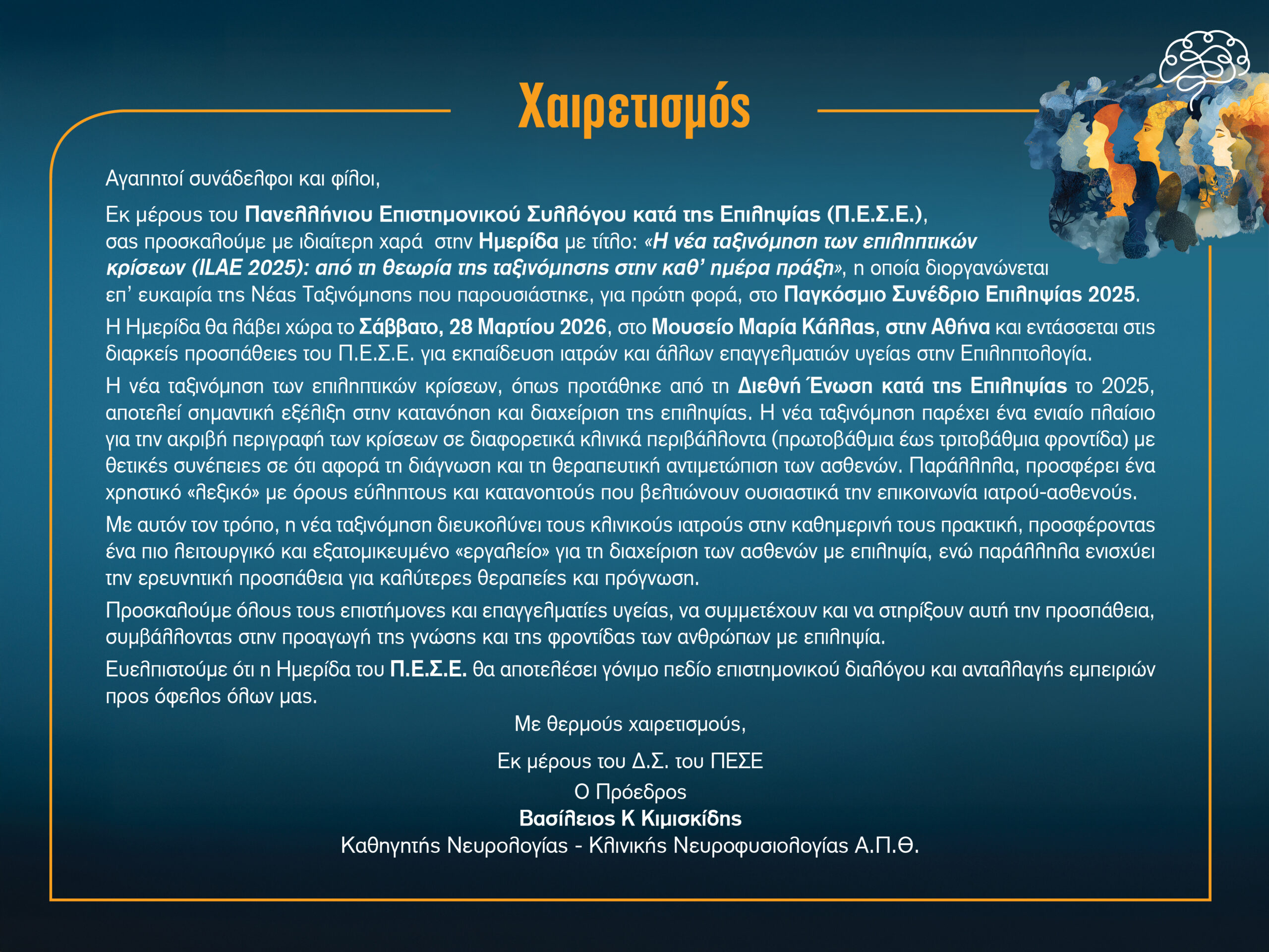 Ημερίδα: «Η νέα ταξινόμηση των επιληπτικών κρίσεων (ILAE 2025): από τη θεωρία της ταξινόμησης στην καθ’ ημέρα πράξη»