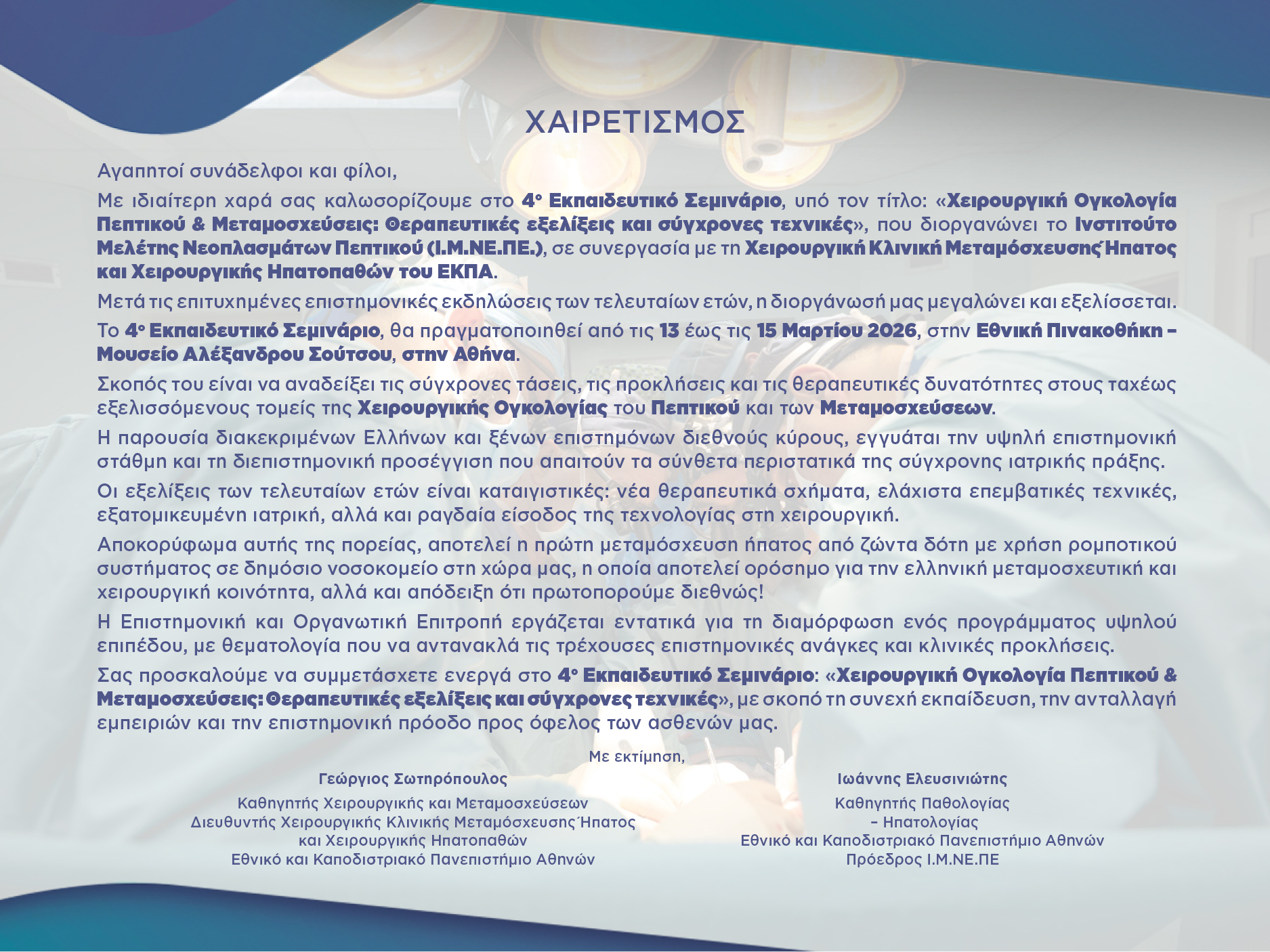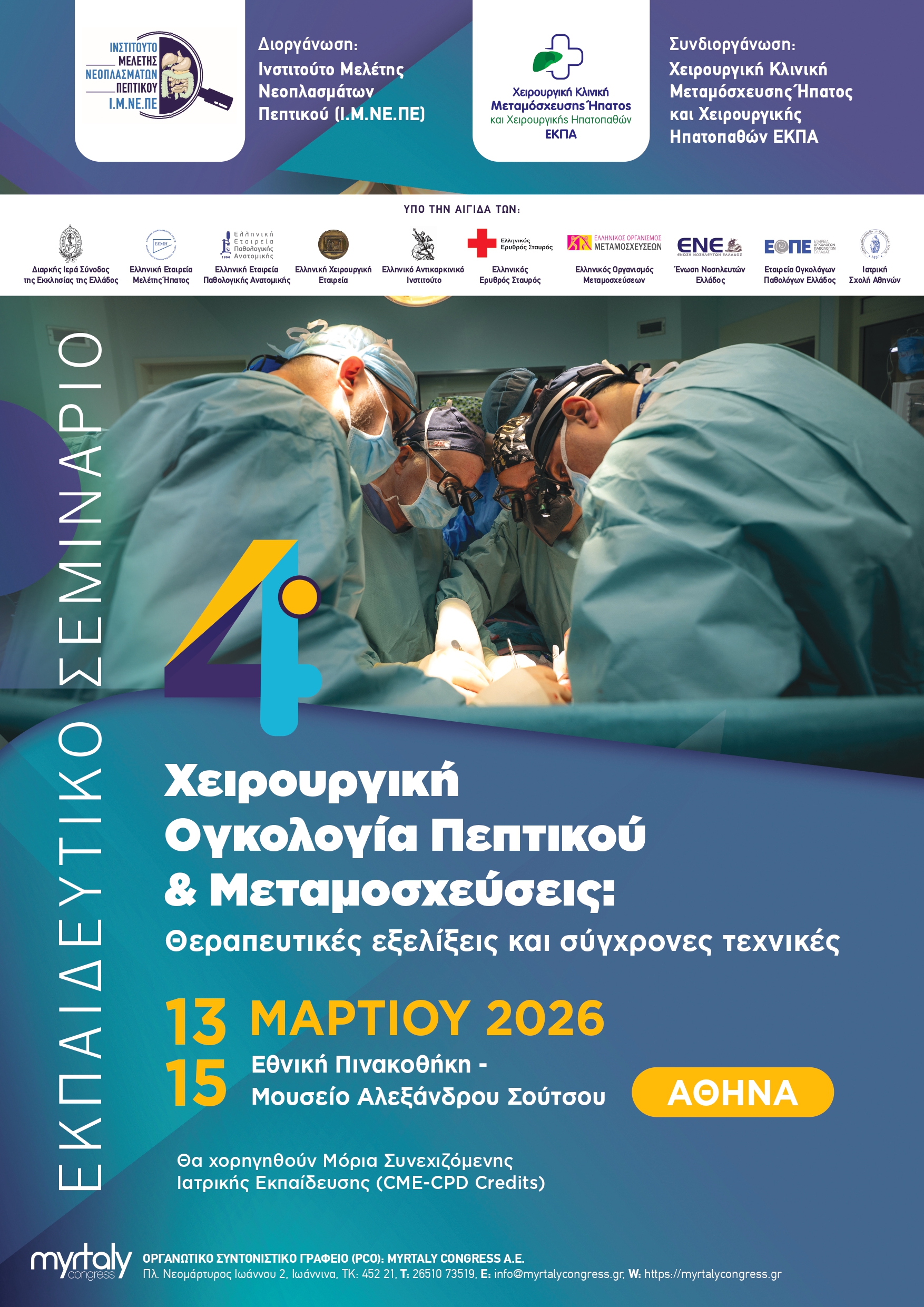 4ο Εκπαιδευτικό Σεμινάριο: «Χειρουργική Ογκολογία Πεπτικού & Μεταμοσχεύσεις: Θεραπευτικές εξελίξεις και σύγχρονες τεχνικές»