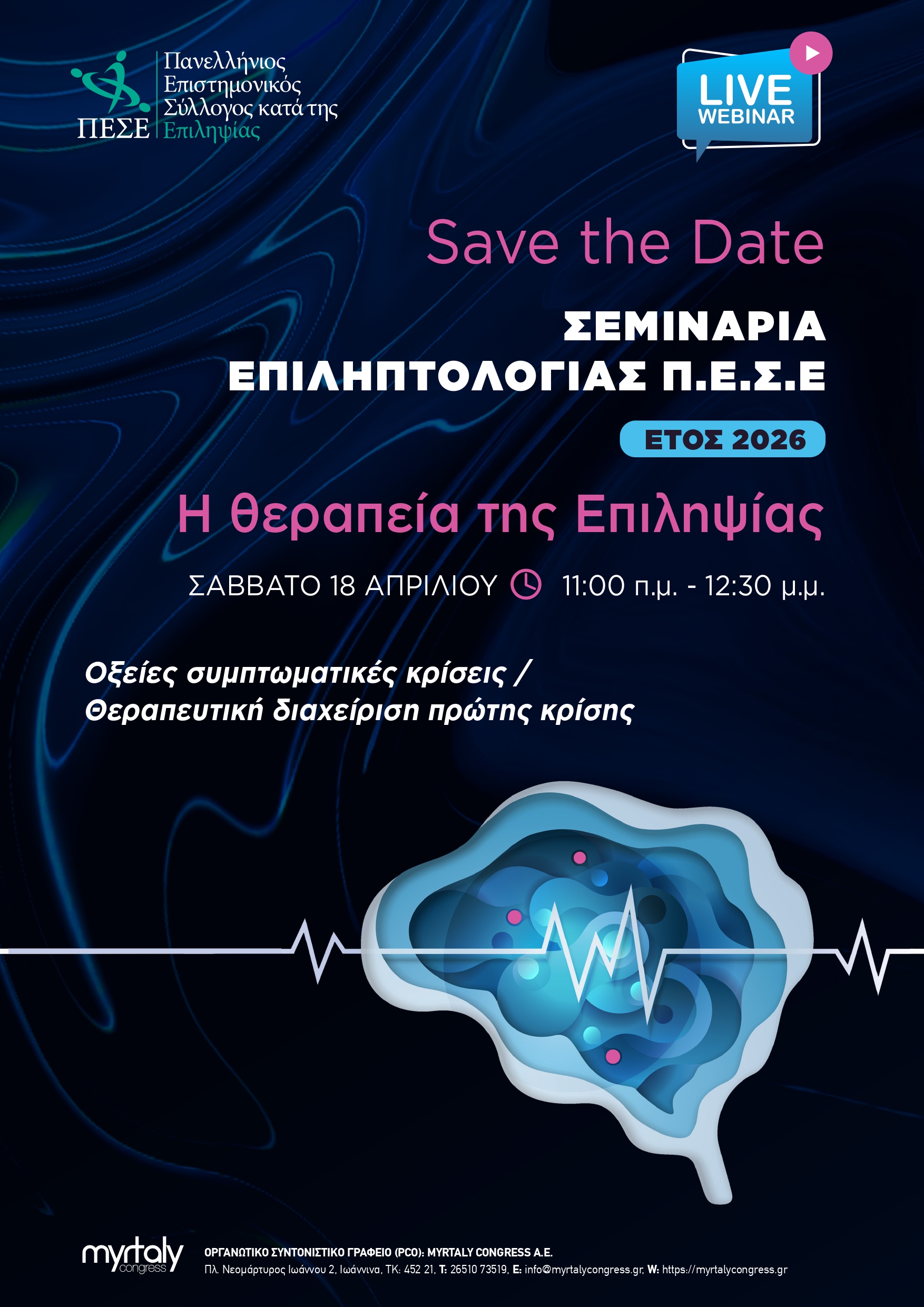 OnlineΟ Πανελλήνιος Επιστημονικός Σύλλογος κατά της Επιληψίας, υλοποιεί ένα νέο, τετραετή κύκλο δωρεάν Διαδικτυακών Σεμιναρίων Επιληπτολογίας, για την περίοδο 2026-2029.